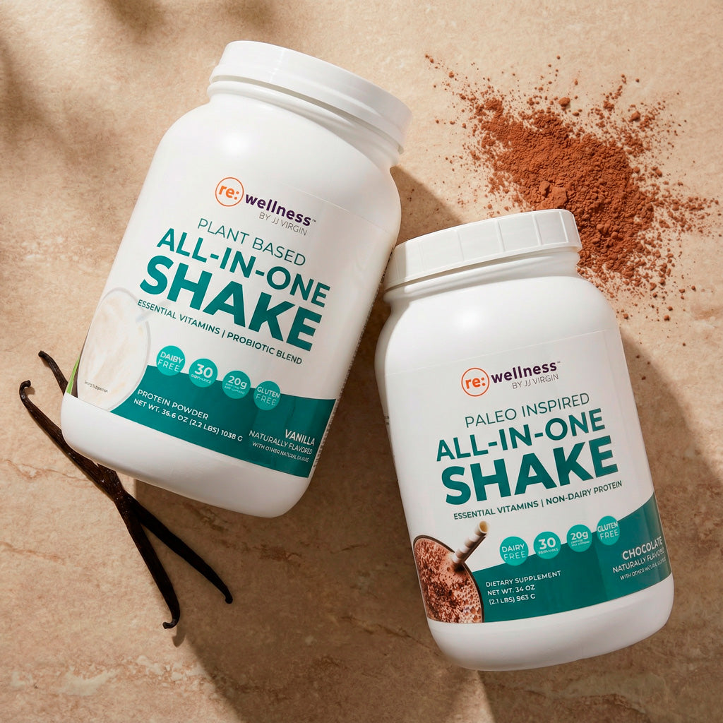I'm using the Vanilla Plant-Based All-In-One Protein Shake, Extra Fiber, and L-Glutamine Powder. I started this 6 days ago, and I'm down 4 pounds and starting to feel so much better! Doing 2 shakes most days, my energy is being restored, I'm sleeping better, and I'm not starving – I can't wait to continue to feel better and look better! JJ Virgin, you rock, girlfriend! ❤️ - Mary W.