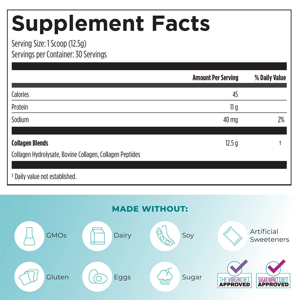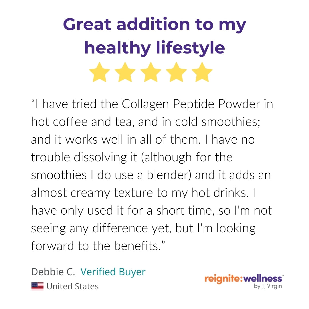 Collagen Peptides Powder can help you support proper bone density, skin health, thickness, hydration & appearance, nail health, joint tissue health, muscle strength, GI tract health, and more.*