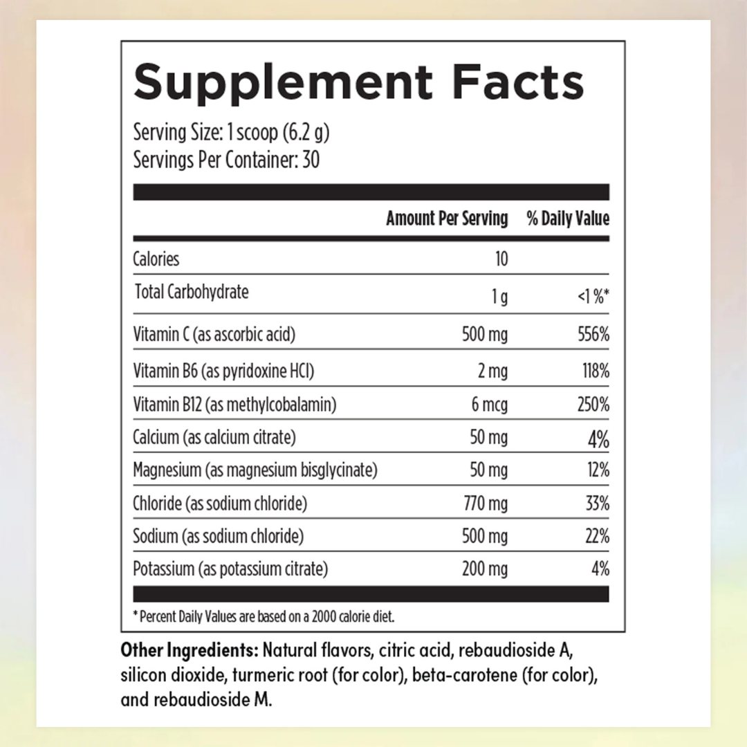 ElectroReplenish includes a blend of vitamin C forms: ascorbic acid, calcium ascorbate, and magnesium ascorbate. The buffered forms—calcium and magnesium ascorbate—are selected for their excellent absorption and gentler impact on digestion. Vitamin C plays a key role in antioxidant support, immune function, and tissue repair, making it a valuable nutrient to support hydration, recovery, and overall resilience.