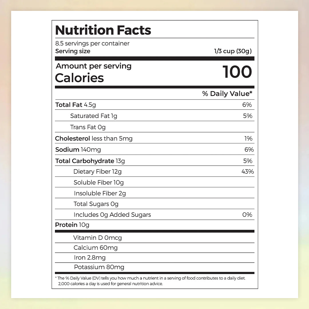 It supports a protein-first, muscle-focused lifestyle by adding meaningful protein and fiber for staying power. Net carbs are 1 g per serving (13 g total carbs minus 12 g fiber).
